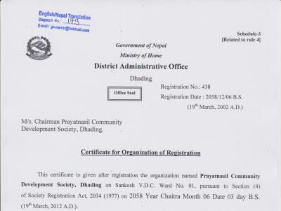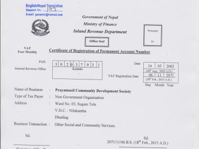 PAN Registration certificate